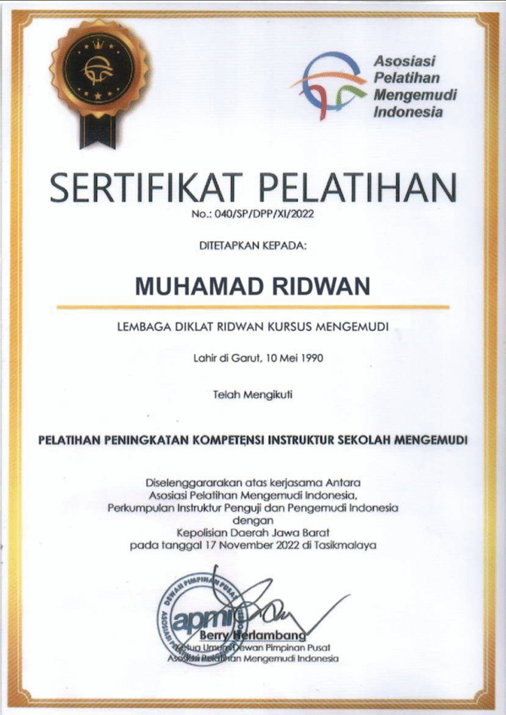 Hallo… Saya Muhamad Ridwan, saya adalah pemilik dari RIDWAN KURSUS MENGEMUDI. Saya membuka lembaga kursus ini tidak berangkat dari sebuah kemudahan, saya sudah menjadi pelatih kursus mengemudi sejak tahun 2008, saat itu saya masih berusia 18 tahun. Sebelum menjadi pelatih saya hanya seorang anak penyedia patok untuk kebutuhan parkir para pelatih, namun pada saat itu ada seorang pelatih yang sangat berjasa dalam hidup saya, dia mengajarkan saya untuk menjadi seorang instruktur. Hingga akhirnya saya bekerja di tempat kursus orang lain dan menjadi instruktur. Saya tidak hanya menjadi instruktur di satu perusahaan, tetapi saya sempat berpindah-pindah tempat kursus mengemudi untuk menjadi istruktur, tidak jarang sayapun ikut menjadi perintis di perusahaan orang lain.